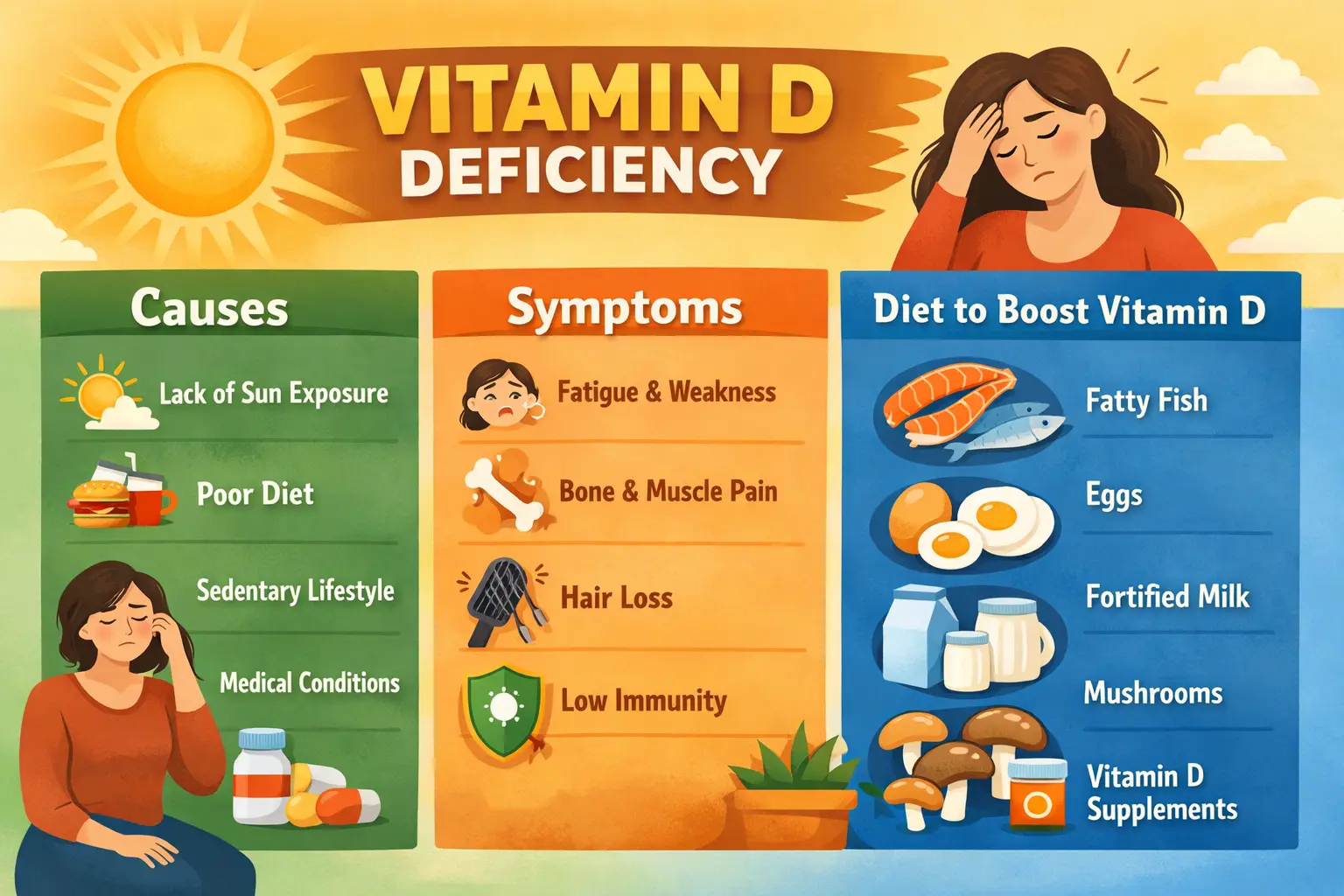 Vitamin D Deficiency: Symptoms, Caused and Diet